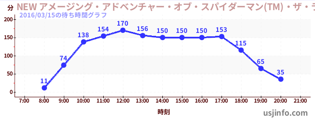 • NEW アメージング・アドベンチャー・オブ・スパイダーマン(TM)・ザ・ライド 4K3D$B$N(B2016年03月15日の待ち時間