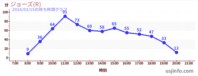 • ジョーズ(R)$B$N(B2016年03月15日の待ち時間