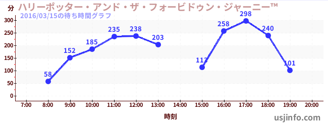 • ハリーポッター・アンド・ザ・フォービドゥン・ジャーニー™$B$N(B2016年03月15日の待ち時間