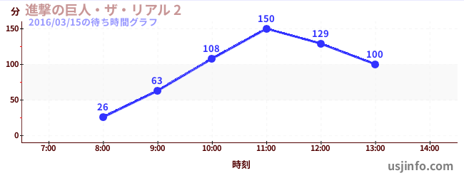• 進撃の巨人・ザ・リアル 2$B$N(B2016年03月15日の待ち時間