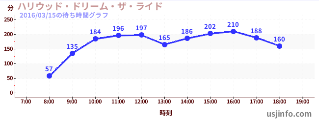 • ハリウッド・ドリーム・ザ・ライド$B$N(B2016年03月15日の待ち時間