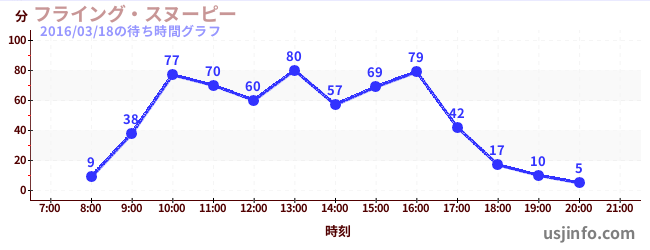 • フライング・スヌーピー$B$N(B2016年03月18日の待ち時間