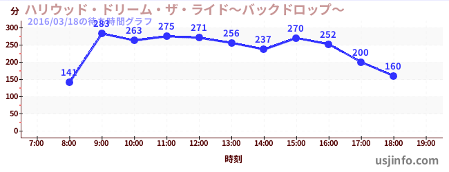 • ハリウッド・ドリーム・ザ・ライド〜バックドロップ〜$B$N(B2016年03月18日の待ち時間