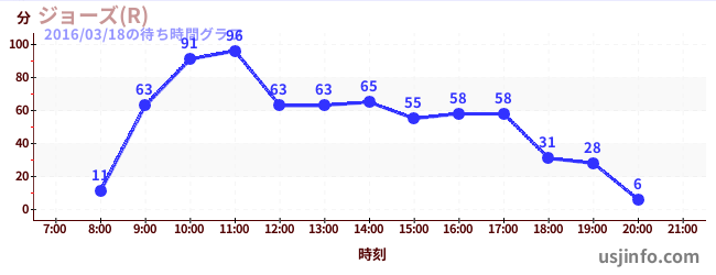 • ジョーズ(R)$B$N(B2016年03月18日の待ち時間