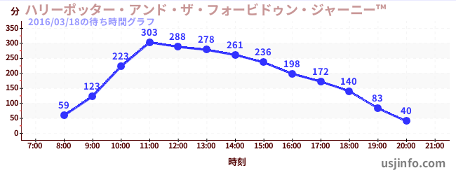 • ハリーポッター・アンド・ザ・フォービドゥン・ジャーニー™$B$N(B2016年03月18日の待ち時間