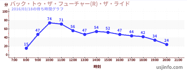 • バック・トゥ・ザ・フューチャー(R)・ザ・ライド$B$N(B2016年03月18日の待ち時間