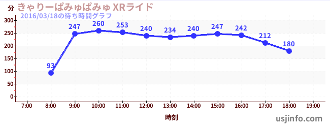 • きゃりーぱみゅぱみゅ XRライド$B$N(B2016年03月18日の待ち時間