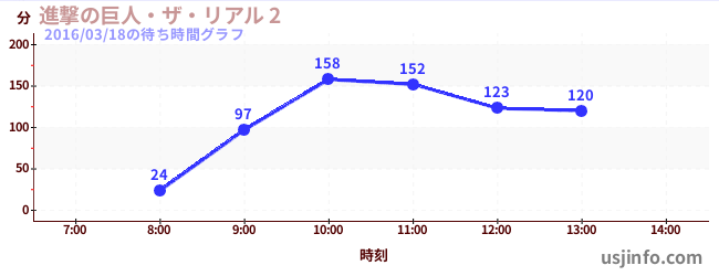 • 進撃の巨人・ザ・リアル 2$B$N(B2016年03月18日の待ち時間