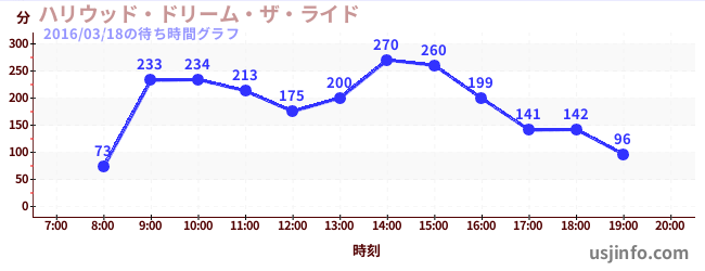 • ハリウッド・ドリーム・ザ・ライド$B$N(B2016年03月18日の待ち時間