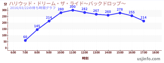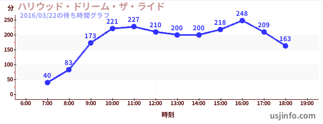 • ハリウッド・ドリーム・ザ・ライド$B$N(B2016年03月22日の待ち時間