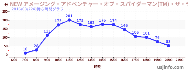 • NEW アメージング・アドベンチャー・オブ・スパイダーマン(TM)・ザ・ライド 4K3D$B$N(B2016年03月22日の待ち時間