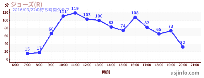 • ジョーズ(R)$B$N(B2016年03月22日の待ち時間