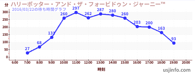 • ハリーポッター・アンド・ザ・フォービドゥン・ジャーニー™$B$N(B2016年03月22日の待ち時間