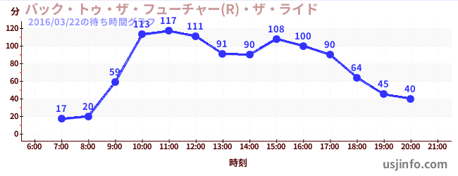 • バック・トゥ・ザ・フューチャー(R)・ザ・ライド$B$N(B2016年03月22日の待ち時間