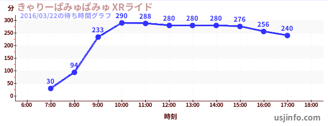 • きゃりーぱみゅぱみゅ XRライド$B$N(B2016年03月22日の待ち時間