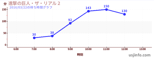• 進撃の巨人・ザ・リアル 2$B$N(B2016年03月22日の待ち時間