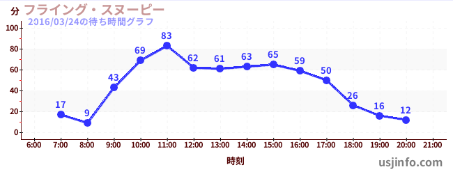 • フライング・スヌーピー$B$N(B2016年03月24日の待ち時間