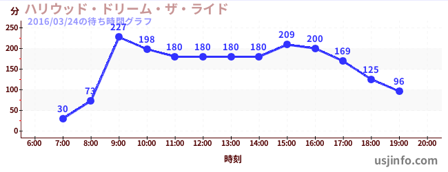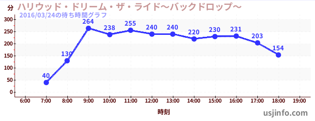 • ハリウッド・ドリーム・ザ・ライド$B$N(B2016年03月24日の待ち時間
