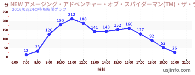• NEW アメージング・アドベンチャー・オブ・スパイダーマン(TM)・ザ・ライド 4K3D$B$N(B2016年03月24日の待ち時間