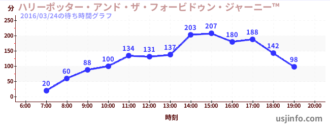 • ハリーポッター・アンド・ザ・フォービドゥン・ジャーニー™$B$N(B2016年03月24日の待ち時間