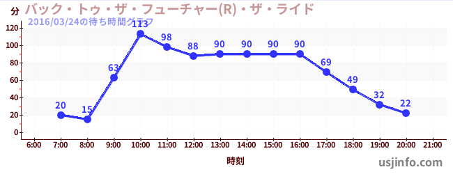 • バック・トゥ・ザ・フューチャー(R)・ザ・ライド$B$N(B2016年03月24日の待ち時間