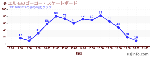 • エルモのゴーゴー・スケートボード$B$N(B2016年03月24日の待ち時間