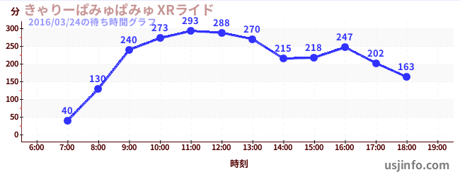 • きゃりーぱみゅぱみゅ XRライド$B$N(B2016年03月24日の待ち時間