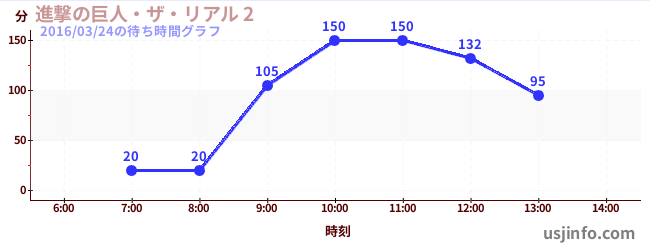 • 進撃の巨人・ザ・リアル 2$B$N(B2016年03月24日の待ち時間