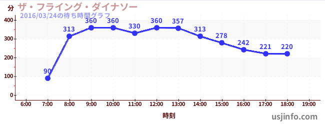• ザ・フライング・ダイナソー$B$N(B2016年03月24日の待ち時間