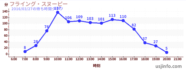 • フライング・スヌーピー$B$N(B2016年03月27日の待ち時間