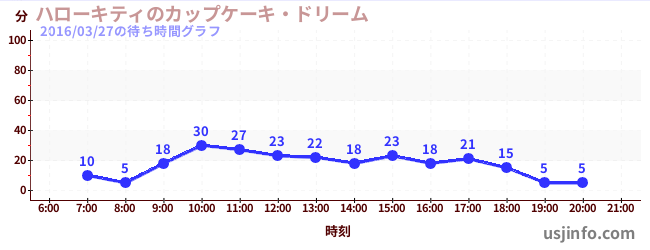 • ハローキティのカップケーキ・ドリーム$B$N(B2016年03月27日の待ち時間
