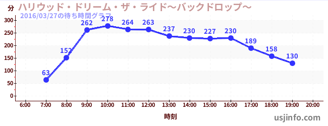 • ハリウッド・ドリーム・ザ・ライド〜バックドロップ〜$B$N(B2016年03月27日の待ち時間