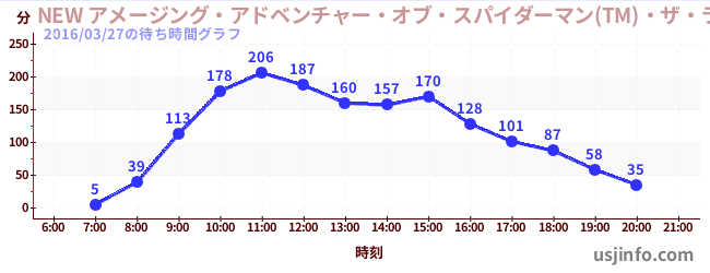 • NEW アメージング・アドベンチャー・オブ・スパイダーマン(TM)・ザ・ライド 4K3D$B$N(B2016年03月27日の待ち時間