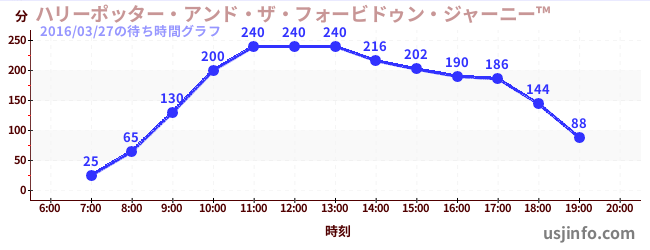 • ハリーポッター・アンド・ザ・フォービドゥン・ジャーニー™$B$N(B2016年03月27日の待ち時間