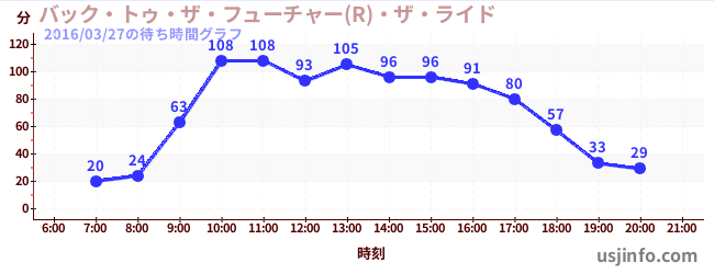 • バック・トゥ・ザ・フューチャー(R)・ザ・ライド$B$N(B2016年03月27日の待ち時間