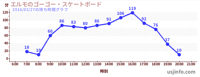 • エルモのゴーゴー・スケートボード$B$N(B2016年03月27日の待ち時間