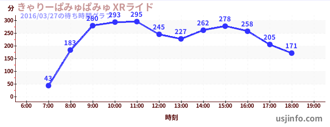 • きゃりーぱみゅぱみゅ XRライド$B$N(B2016年03月27日の待ち時間