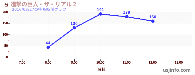 • 進撃の巨人・ザ・リアル 2$B$N(B2016年03月27日の待ち時間