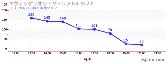 • エヴァンゲリオン・ザ・リアル4-D: 2.0$B$N(B2016年03月27日の待ち時間