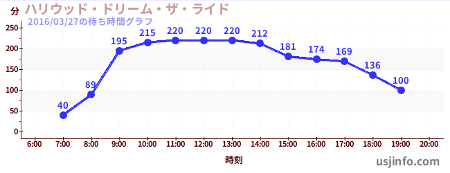 • ハリウッド・ドリーム・ザ・ライド$B$N(B2016年03月27日の待ち時間