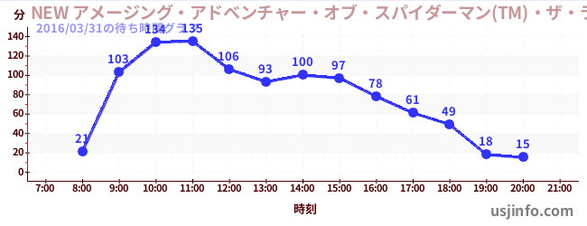 • NEW アメージング・アドベンチャー・オブ・スパイダーマン(TM)・ザ・ライド 4K3D$B$N(B2016年03月31日の待ち時間