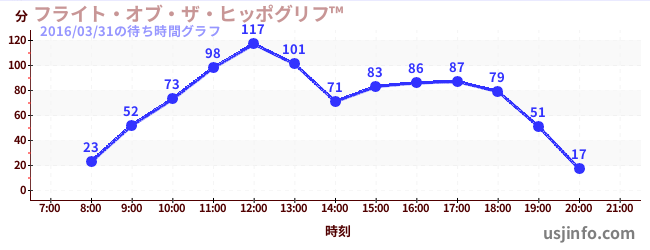 • フライト・オブ・ザ・ヒッポグリフ™$B$N(B2016年03月31日の待ち時間