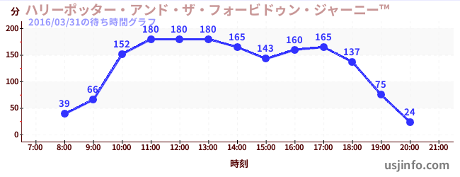 • ハリーポッター・アンド・ザ・フォービドゥン・ジャーニー™$B$N(B2016年03月31日の待ち時間