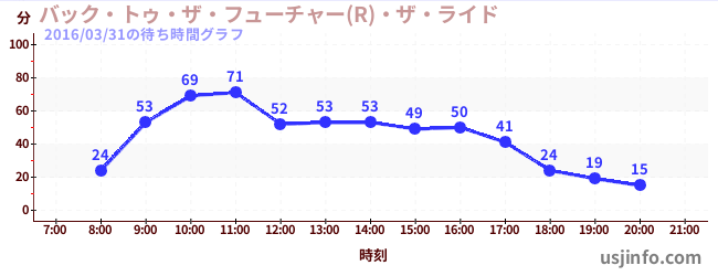 • バック・トゥ・ザ・フューチャー(R)・ザ・ライド$B$N(B2016年03月31日の待ち時間