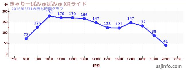 • きゃりーぱみゅぱみゅ XRライド$B$N(B2016年03月31日の待ち時間