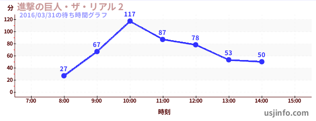 • 進撃の巨人・ザ・リアル 2$B$N(B2016年03月31日の待ち時間