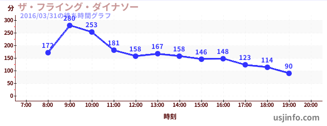 • ザ・フライング・ダイナソー$B$N(B2016年03月31日の待ち時間