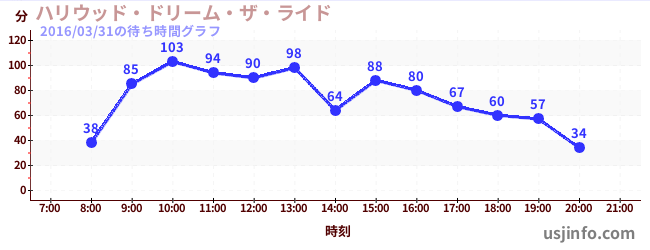 • ハリウッド・ドリーム・ザ・ライド$B$N(B2016年03月31日の待ち時間
