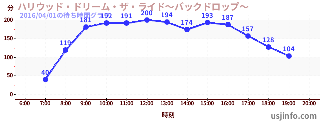 • ハリウッド・ドリーム・ザ・ライド〜バックドロップ〜$B$N(B2016年04月01日の待ち時間