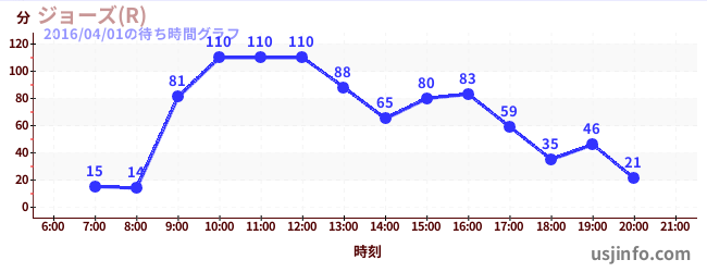 • ジョーズ(R)$B$N(B2016年04月01日の待ち時間
